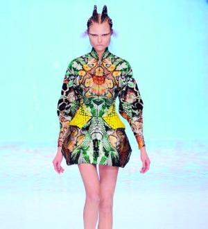 圖3:Alexander McQueen 2010春夏女裝秀場,如海洋生物般的彩色印花奪人眼球,前衛(wèi)而大膽!