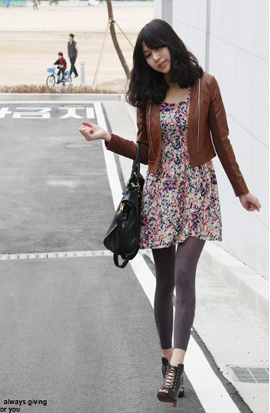可愛的印花連衣裙很有淑女味道哦,搭配象牙白色可愛小外套,選擇與裙子同色系的漆皮平底鞋的組合會更出彩,擺脫平庸讓他充滿新鮮感。