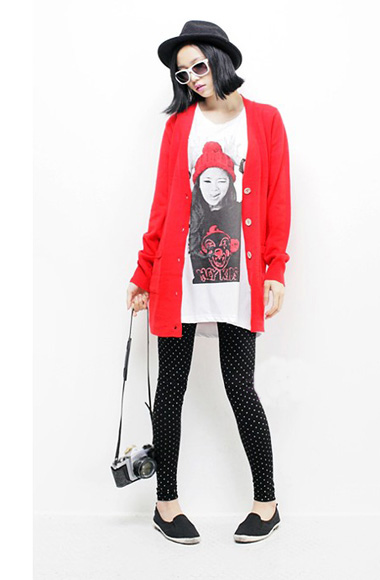 糖果色的針織外套季節(jié)感十足,搭配休閑印花T恤和漸染牛仔短裙,活力清新的氣質(zhì)也讓他倍感舒服。