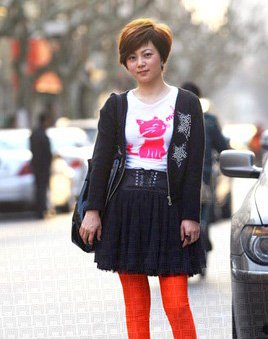 我知道打底褲外罩一層薄紗算不上過得去的搭配,不過總還是用心打扮了,如果能注意整體的風(fēng)格統(tǒng)一就會事半功倍了。