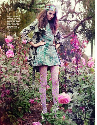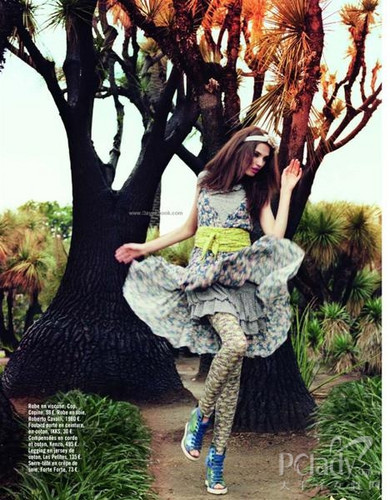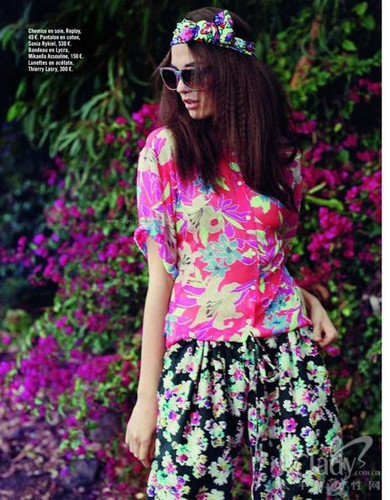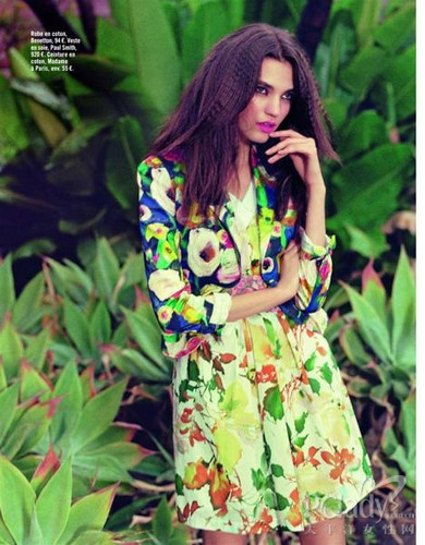 多姿多彩的印花圖案被多次捧上雜志舞臺。法國《Glamour》雜志也曾推出一系列關于印花服飾的組圖,并大膽地采用繁華亂眼的花園作背景,在與模特所穿花卉服飾的強烈對比下,盡顯獨特的風格品味?墒牵绱嘶ㄇ蔚囊路,又有多少人能勇敢地穿上街呢?