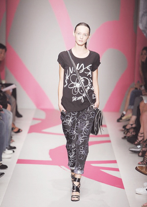 而DKNY 2010春夏女裝秀場讓人不禁在想:設計師唐娜·凱倫 (Donna Karan) 是不是做了個斑斕的鮮花美夢?將服裝描繪得如此花團錦簇,色彩明艷。黑色,灰色,海軍藍或卡其等中性的都市色彩作為基色,上面涂抹著栩栩如生的花朵涂鴉線條或多彩而濃重的抽象圖案,有玄武黑、牡丹紅、橘紅色、鎳灰色及鼠尾草綠!獩]錯!“City in Bloom”開花中的城市,正是本場秀的主題。