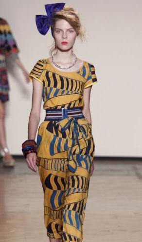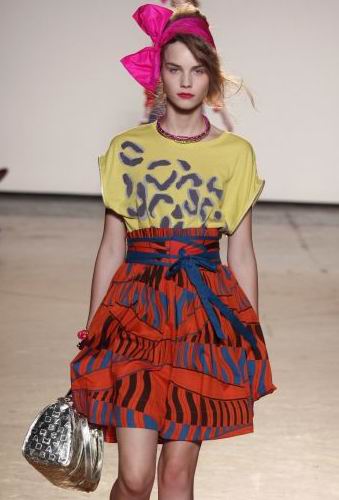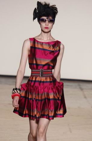 【集萃網(wǎng)觀察】2010年春夏女裝系列,一改充滿少女情懷的設(shè)計(jì),大膽揉合70至80年代的率性元素及濃厚非洲部落色彩于一身,帶領(lǐng)一眾Marc girls以顏色繽紛鮮明的服飾迎接活力無限的春夏。 系列中保留度假系列大熱的大紅色與藍(lán)色,穿插著各式糖果色如粉紅色、青綠色、鮮黃色等作點(diǎn)綴,好不熱鬧,并呼應(yīng)以非洲部落為藍(lán)圖的主題。而Marc Jacobs擅長(zhǎng)的印花圖案,亦繼續(xù)保持一貫玩味設(shè)計(jì),為今季系列帶來無限驚喜。迎合土著部落濃厚的色彩,有顏色鮮明的花卉圖案「Ukita Patchwork」及以橘紅色和鮮黃色為主的幾何圖案「Dashiki Stripe」;「Pearlie Dot」,以哈哈笑為取材靈感,用上橘黃色的大圓點(diǎn)配上深藍(lán)底色,更顯活力生氣;而「Jacquetta Stripe」及「Ava Stripe」則以粗細(xì)不一的條紋,配上閃亮的布料及撞色效果,令平凡的條紋變得不平凡,亦是今季不錯(cuò)的選擇。 今季系列剪裁以松身為主,高腰燈籠九分褲最為突出,配搭上衣tuck-in的著法,令穿著者的身形更顯高佻窈窕;而每個(gè)不同造型都用條紋腰帶塑造女性化的身段,將Marc girl嫵媚的一面表露無遺。服飾搭配方面,則愛用兩款截然不同的印花圖案拼湊在一起,如部落風(fēng)的印花配上大圓點(diǎn)或兩款不同的幾何圖案,天馬行空地搭配在一起,混搭令視覺效果更豐富,充滿無限驚喜。而款式方面,則以little flare skirt最為突出,利用顏色鮮明及光滑硬挺的布料作搭配,充分表現(xiàn)帥氣個(gè)性卻不失少女活潑俏皮的一面。此外,七彩繽紛的絲帶兔耳朵頭飾亦不容忽視,大蝴蝶結(jié)猶如賓尼兔的雙耳,趣味十足。