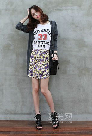 雜亂的圖案在這條迷你裙上不會得混亂,反而有一種別致的甜美感;束腰的設(shè)計很好地符合了MM要修飾身材的要求;明黃色的上衣非常簡單,但卻異常甜美可愛;時下大熱的及膝襪能讓你看上去不僅可愛,而且非常潮哦! 來源:愛美網(wǎng)