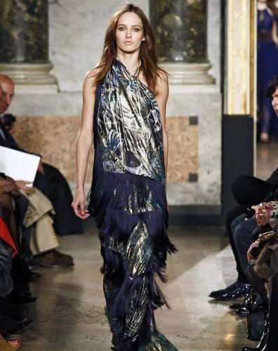 Emilio Pucci創(chuàng)作總監(jiān)Peter Dundas筆下的秋冬女裝,濃濃散發(fā)品牌獨有的波希比亞華麗氣質,卻又見殿堂攝影師Helmut Newton鏡頭下七十年代現(xiàn)代女子的糜爛魅力,誘人性感又強悍,輪廓分明的服裝線條融入幾分悠游寫意,感性中活現(xiàn)新一代意大利華貴氣派。