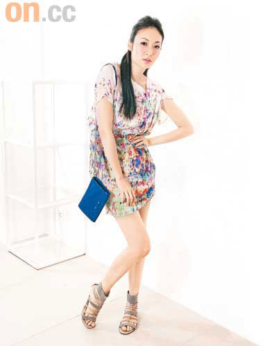 熟悉潮流走勢的 Jacquelin 留意到每逢夏天印花衫例必占據(jù)主導地位,各時裝品牌均致力發(fā)放美輪美奐的花樣,Jacquelin 亦愛在夏天穿印花衫,覺得特別好 Feel!跋鄬ζ渌O計,印花服色調(diào)通常較為 Colorful,就是這一點最能牽動心情,在艷陽天穿上感覺特別開心,又有活力。尤其喜歡抽象的圖案設計,感覺輕松一點,比起那些太過真實的圖案更易于 Carry。配襯方面,由于服飾已經(jīng)夠花巧,所以不宜配襯太多飾物,最重要是配襯一對涼鞋,可帶出清爽的感覺。而妝容亦要注意,特別是眼影顏色,柔和的粉色最百搭。”