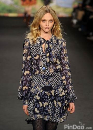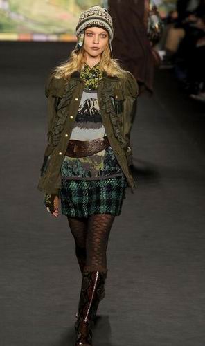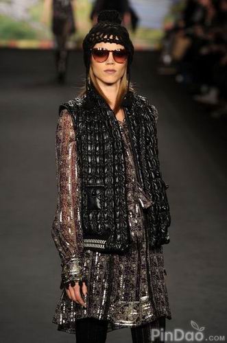 如果說單從這些帶有濃郁復古風格的衣服就將本季的風格定義為古著式看點,或許是不太恰當?shù)摹τ?010秋冬季Anna Sui作品秀的整體印象應(yīng)該是稀奇古怪的反回歸。不用矛盾,不用懷疑,這就是Anna Sui!受奇才Steven Meisel的影響,她知道如何恰如其分地搞怪。平底靴,寬大紐花毛衫,又或者是軟毛皮無鈕女短上衣都讓這種嬉皮公主的形象更實際。同時,那些不被提及的,未能得到相應(yīng)評價的幕后工作者們,現(xiàn)在正是時候來把功勞分給他們了。Pat McGrath的精美妝容, Garren的漂亮發(fā)型和 Frederic Sanchez的音樂。在將來的某個時候,這些元素都將會是最精彩的紐約被低估的設(shè)計者博物展會上不可或缺的一部分。
