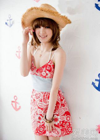 充滿海洋風(fēng)格氣息的印花,讓人無(wú)比向往夏天的海邊;而紅色的面料本身就非常吸引人的眼球呢!低V領(lǐng)的吊帶處理,十分性感迷人;而丹寧布的腰部拼布,很好地修飾了腰身之余,還令整條裙子不會(huì)因?yàn)榇罅康募t色而顯俗呢!