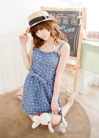 藍(lán)色丹寧布吊帶裙,別致的粉紅碎花相當(dāng)可愛,彰顯你甜美的氣質(zhì);而腰間的蝴蝶結(jié)更是讓你甜美度UP,而裙子的簡(jiǎn)單剪裁很是符合夏日該有的簡(jiǎn)約主義呢!