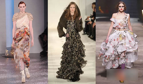 【集萃網(wǎng)觀察】從柔美的荷葉邊到女人味十足的浪漫印花,2010秋季時(shí)裝周似乎更加偏愛(ài)表現(xiàn)大女人的溫柔與婉約。設(shè)計(jì)師們已經(jīng)不再局限簡(jiǎn)單的女性化的元素,多種女性元素的混合成為金秋的又一時(shí)尚亮點(diǎn)。
