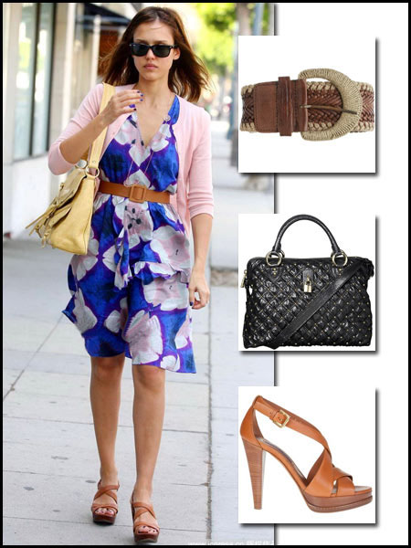 搭配建議:杰西卡阿爾巴就算裙裝也能如此驚艷,藍(lán)白印花裙裝上身,棕黃色腰帶配對(duì)同色系高跟鞋,修身露細(xì)腰要不是優(yōu)雅!