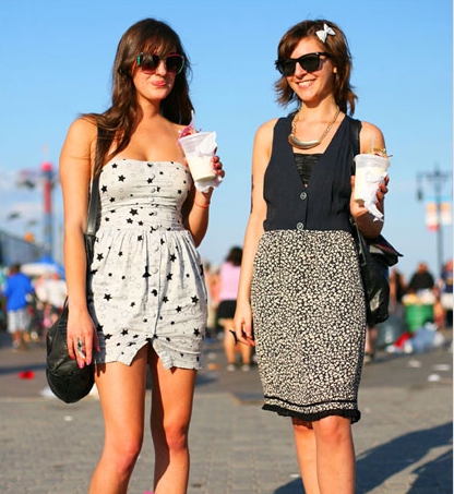 淺色裹胸連衣裙青春俏麗,外面可以塔配的超薄針織衫能抵擋早晚的溫差。印花V領(lǐng)裙適度的露膚,再用羅馬鞋做點(diǎn)綴,整體搭配是青春有活力。