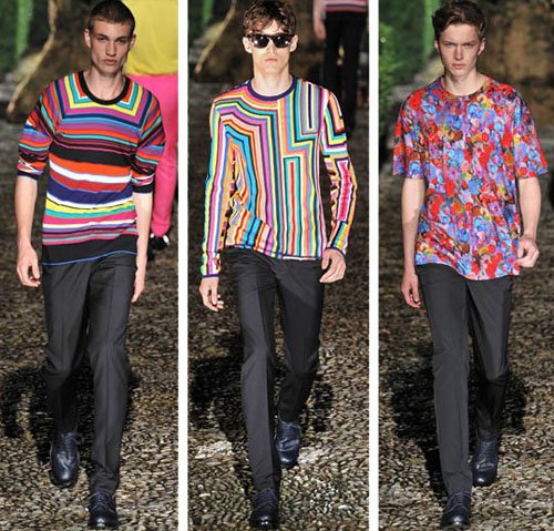 米蘭時裝周開幕第一日,便讓人大跌眼鏡。向來講求極簡主義的Jil Sander都開始耐不住寂寞,用藝術(shù)家Frank Stella式的虹彩條紋來包裝其原本應(yīng)以自豪的銳利廓形。