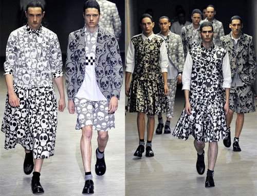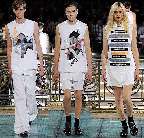 真不知道成就2011春夏季男裝的,究竟是時裝設(shè)計師,還是面料設(shè)計師?放眼望去,幾乎每家每戶都拿色彩和印花做文章,而廓形均是前兩年積攢下來的老梗,男性的legging、鉛筆褲、軍裝外套、短小的外套、羅馬鞋……絲毫不見真正能體現(xiàn)難度的神來之筆。因此,2011春夏季的男裝,更像是面料設(shè)計師們的比拼,而時裝設(shè)計師們哪里去了?速來討一頓板子,棍棍都要落在屁股上。