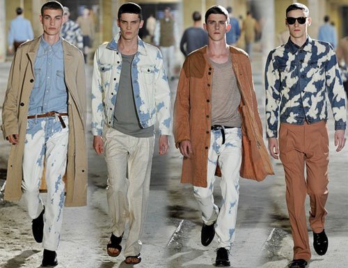 而向來以民族紋飾藝冠天下的Dries Van Noton此番也簡簡單單地往雪白的襯衫上,灑了幾筆墨,配色雅致,不矯揉造作;而他本季的牛仔服是大亮點,用酸腐蝕后的丹寧布,呈現(xiàn)出一種“燒傷”之美,僅僅幾塊殘存的靛藍,才提醒你其“前身”乃一條牛仔褲,從未見過別家玩過。
