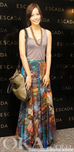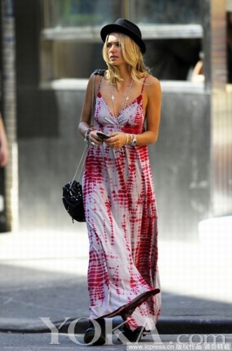 吊帶的印花長裙嫵媚動(dòng)人,浪漫繁復(fù)的印花絲毫沒有雜亂的感覺穿在她的身上反而多了份風(fēng)情萬種。