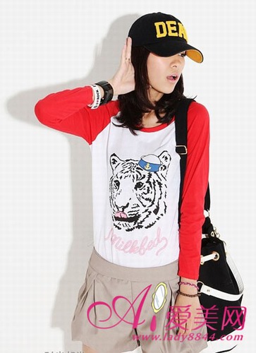 時(shí)尚點(diǎn)評(píng):插肩袖T恤顯得更加年輕時(shí)尚,紅色與白色的搭配,特別時(shí)尚搶眼。老虎圖案印花霸氣而有著野性的味道。