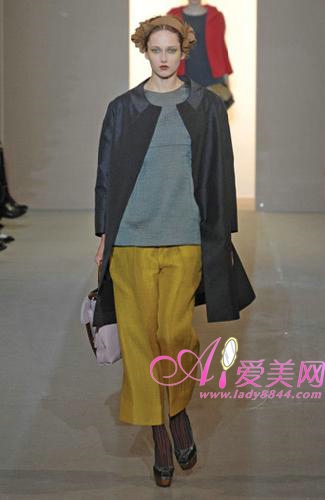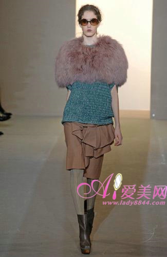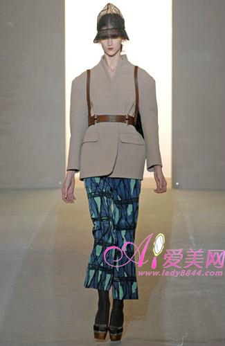 Consuelo Castiglioni 選擇以緩慢的腳步,并且不與過去的成功經(jīng)驗(yàn)混合,本季中以寬松的輪廓線條、低腰的剪裁,讓身體得到最舒適的放松,而且每一件衣服上的印花圖案,幾乎都可以當(dāng)作一件藝術(shù)品來欣賞,相當(dāng)獨(dú)特。色彩,是Marni 本季很重要的元素,大地般的柔和色調(diào),配上湖水綠、紫色、芥末黃、灰色、棕色、藍(lán)色等,而且穿插的橙橘色調(diào),豐富整個系列。此外,印花也是相當(dāng)搶眼,不同的圖案與色調(diào),辨識度相當(dāng)?shù)母,再加上小型太陽眼鏡的搭配,可說是極度的柔美,可說是2008秋冬相當(dāng)成功的一個系列之一。