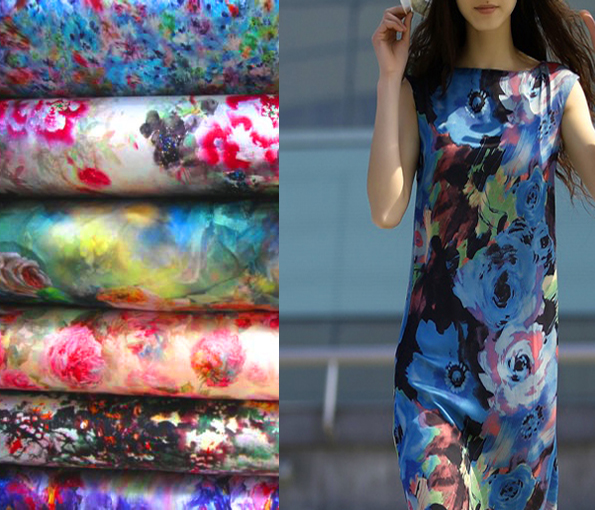 用于生產(chǎn)的數(shù)碼印花機為最新機型,采用墨滴可控微壓電技術,將染料直接噴印在經(jīng)過預處理的棉、毛、絲、麻等天然纖維織物上,圖案層次豐富、清晰度高,并經(jīng)過蒸化和水洗工藝,色澤鮮艷、色牢度好。