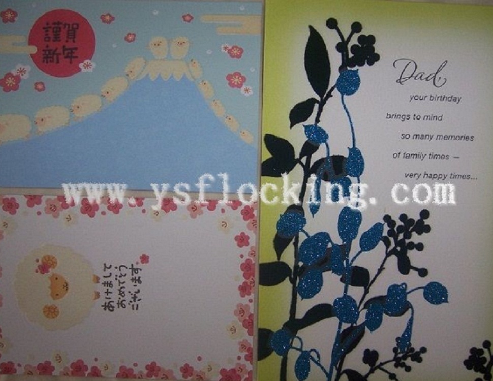 立體感強、顏色鮮艷、手感柔和、形象逼真、無毒無味、不脫絨、耐摩擦、平整無隙,廣泛應(yīng)用于禮品包裝、節(jié)日賀卡、年畫制作、服裝鞋帽商標(biāo)、卡通玩具、辦公文具、燭臺燈飾等行業(yè)。