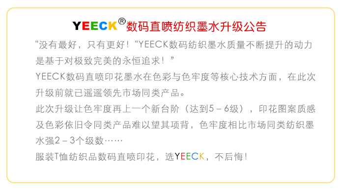 ☆☆☆☆☆ 色彩好 色牢好 成本好,品質(zhì)數(shù)碼直噴印花,YEECK紡織墨水好到No朋友!☆☆☆☆☆