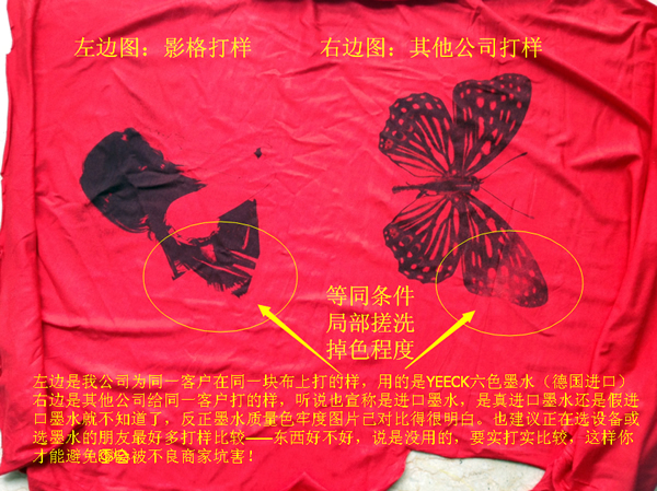 3. 使用本寶貝墨水,在不同品牌與技術(shù)的直噴打印機(jī)(含各種愛普生改裝印花機(jī))上輸出色彩會(huì)可能有差異——當(dāng)然,色牢度會(huì)100%相同