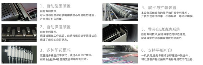 多種印花模式:雙墨路多精度打印模式,滿足不同用戶需求。自有單8色和雙4色墨路復(fù)合墨路專利技術(shù),多種精度模式,可以滿足用戶自主