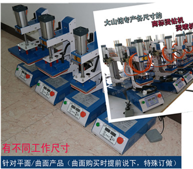 氣壓燙標(biāo)機屬于多功能實用型機型,有效工作尺寸有8*10CM,10*15CM,10*20CM,20*30CM,適合于平面及曲面燙(曲面燙下單前請告之,在平面的基礎(chǔ)上稍有改動,交期快),適合襯里粘合,燙鉆,燙畫,燙金,壓痕,植絨等,滿足工廠批量生產(chǎn)。