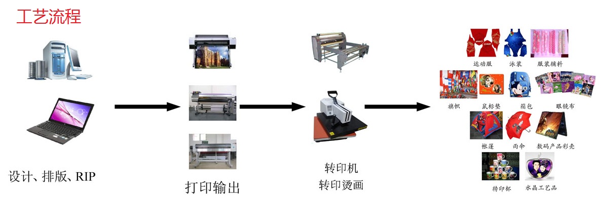 3、通過(guò)轉(zhuǎn)印機(jī) ,將轉(zhuǎn)印紙上的圖案轉(zhuǎn)印到承印物上。轉(zhuǎn)印溫度在180-220度,轉(zhuǎn)印時(shí)間在30-120秒,視承印介質(zhì)的種類,轉(zhuǎn)印溫度和時(shí)間有所區(qū)別。