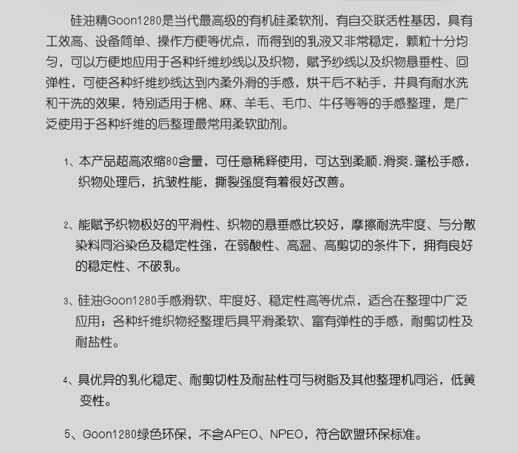 推出高效、環(huán)保、節(jié)能、減排的綠色新型助劑、低消耗助劑,無磷、不含APEO、易生物降解的助劑,并致力于減少化學品使用。
