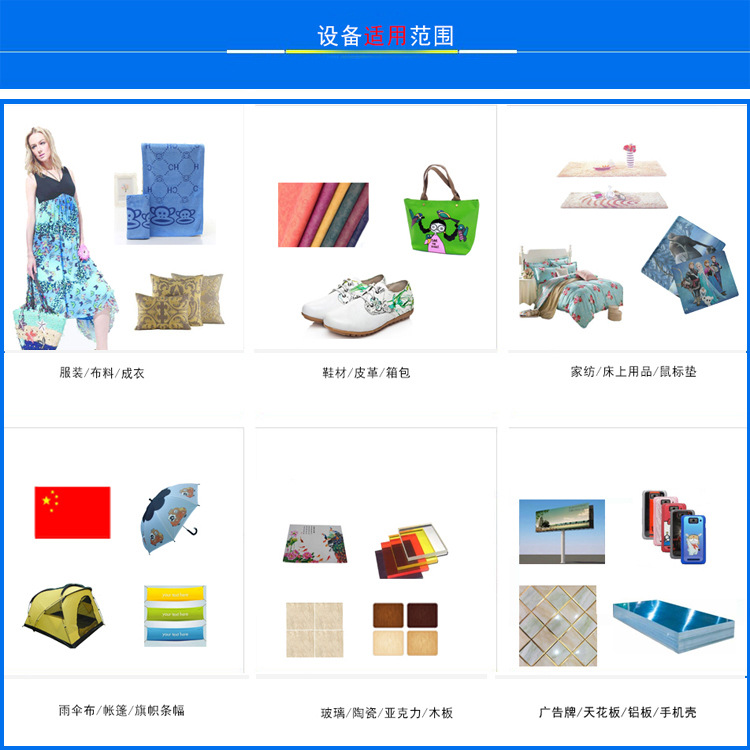 氣動(dòng)雙工位燙畫機(jī)可將升華類、溶劑類油墨的彩色圖案與文字經(jīng)熱轉(zhuǎn)印在棉、麻、化纖、尼龍等織物及陶瓷制品上,還可進(jìn)行植毛燙畫和發(fā)泡印花工藝等的熱處理,及服裝的低溫低壓襯與面料的粘合,如服裝、鞋帽等粘合之用,也可用于生產(chǎn)小批量的手帕