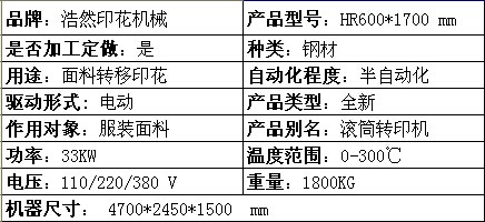 HR--600*1700型滾筒數(shù)碼轉(zhuǎn)印機產(chǎn)品參數(shù):