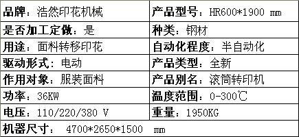 HR--600*1900型滾筒燙畫機(jī)產(chǎn)品參數(shù)