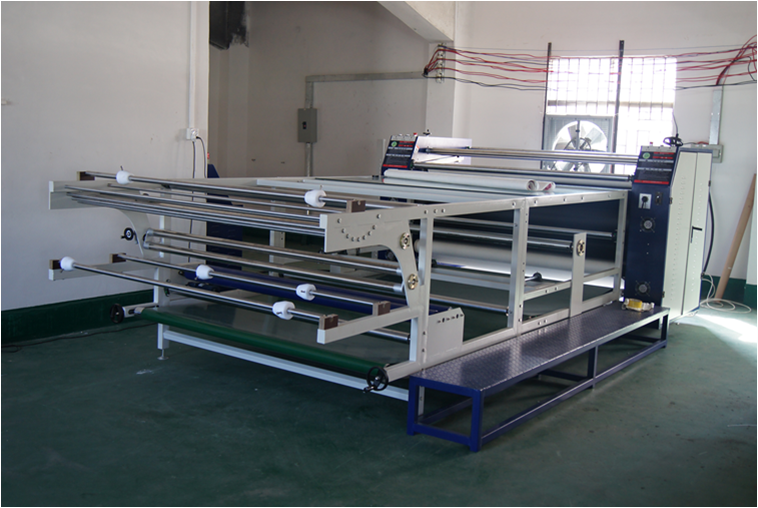 (三)新機使用時: 應(yīng)先采用小塊面料和色紙測試,在轉(zhuǎn)印過程中當(dāng)轉(zhuǎn)印紙或面料太薄時,應(yīng)采用墊紙墊住被承印物后再進(jìn)行轉(zhuǎn)印,采用墊紙轉(zhuǎn)印操作方法可以防止顏料在加熱過程中將顏料轉(zhuǎn)印到毛毯表面,影響毛毯使用壽命及轉(zhuǎn)印效果。