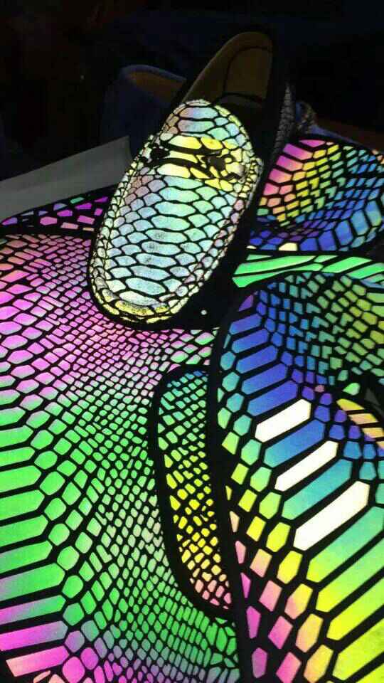 反光彩虹轉(zhuǎn)印膜又名反光七彩轉(zhuǎn)印膜、幻彩反光轉(zhuǎn)移膜、炫彩反光轉(zhuǎn)印膜、五透反光膜、透明五彩反光轉(zhuǎn)印膜、透明反光幻彩膜、透明彩虹反光膜是一種全新的、高科技轉(zhuǎn)移印花反光薄膜材料,通過一臺長達20多米的生產(chǎn)設(shè)備后,將一顆顆晶瑩透明的塑料粒子慢慢吸入,從另一端出來的就是一卷五彩繽紛的彩虹膜,它利用光的干涉原理,白光從外面進入薄膜,發(fā)生光的干涉作用,再反射出來,便產(chǎn)生出五顏六色的色彩。當對彩虹薄膜觀察角度改變或襯以不同的底色時,色澤也會起變化,創(chuàng)造出富有色彩、與眾不同的包裝反光效果,為產(chǎn)品包裝開辟了一個新的領(lǐng)域。結(jié)合彩虹膜與反光轉(zhuǎn)印膜的生產(chǎn)工藝;我們創(chuàng)造性的研發(fā)并生產(chǎn)出了反光幻彩轉(zhuǎn)印膜,此產(chǎn)品只需要印熱轉(zhuǎn)印油墨再印上熱熔膠即可得到奇特的幻彩反光效果,是商標行業(yè),服裝行業(yè),燙畫行業(yè),熱轉(zhuǎn)移印花行業(yè),服飾輔料行業(yè)必不可少的產(chǎn)品;也大大提高服裝檔次。驚奇的是整個生產(chǎn)過程不添加任何染料或印刷色料的情況下,保持膜本身的透明性和光彩奪目的視覺效果,是透明膜或添加色母或經(jīng)由印刷變成的彩色膜不可能達到的效果,此彩虹膜的成本遠遠低于鐳射膜,是反光彩色薄膜運用上的一大突破。