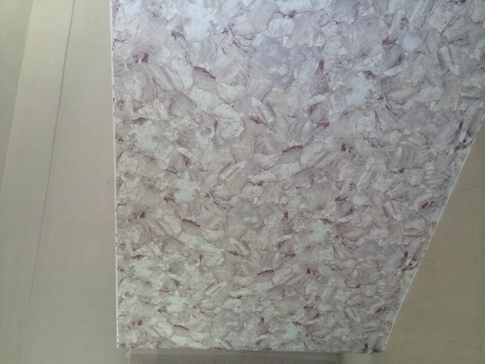 3 按尺寸規(guī)格要求,裁剪轉(zhuǎn)印紙。按順序蓋在涂好膠水的工作面上,用熱薄膜團檫平整。