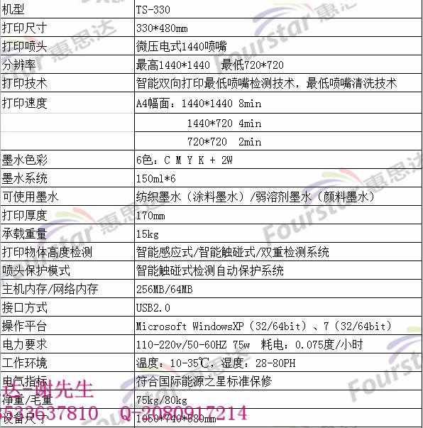 一、它無(wú)需制版、曬版、重復(fù)套色的步驟,無(wú)需絲網(wǎng)印刷和熱轉(zhuǎn)印方式所需要的各式型號(hào)的 工具、材料。采用我們的萬(wàn)能打印機(jī),只需要另外準(zhǔn)備一臺(tái)普通電腦。一個(gè)操機(jī)人員就可以完全獨(dú)立的進(jìn)行印刷操作,省人力物力,并且方式簡(jiǎn)單,立等可取,對(duì)操機(jī)人員的經(jīng)驗(yàn)要求低,只要了解簡(jiǎn)單的圖片處理軟件就可以了。