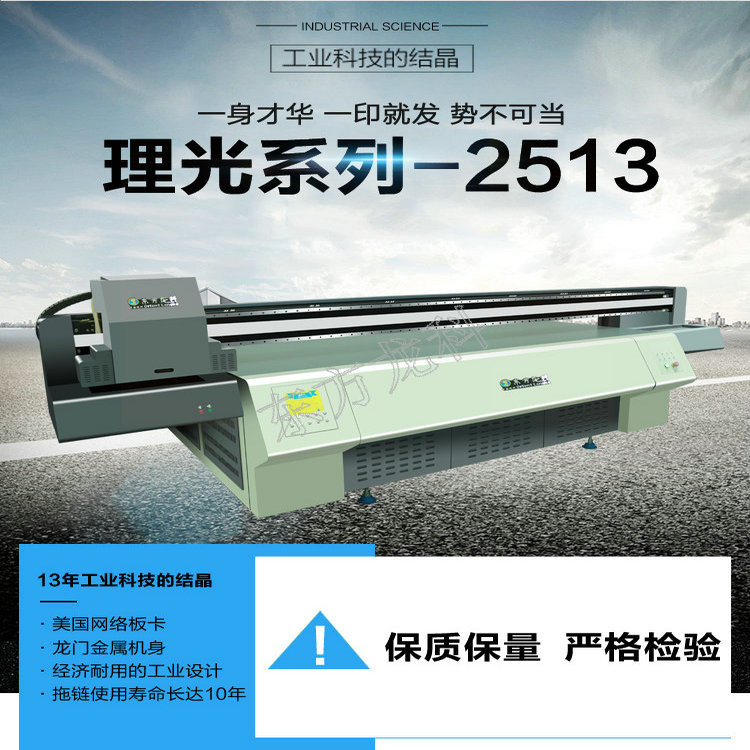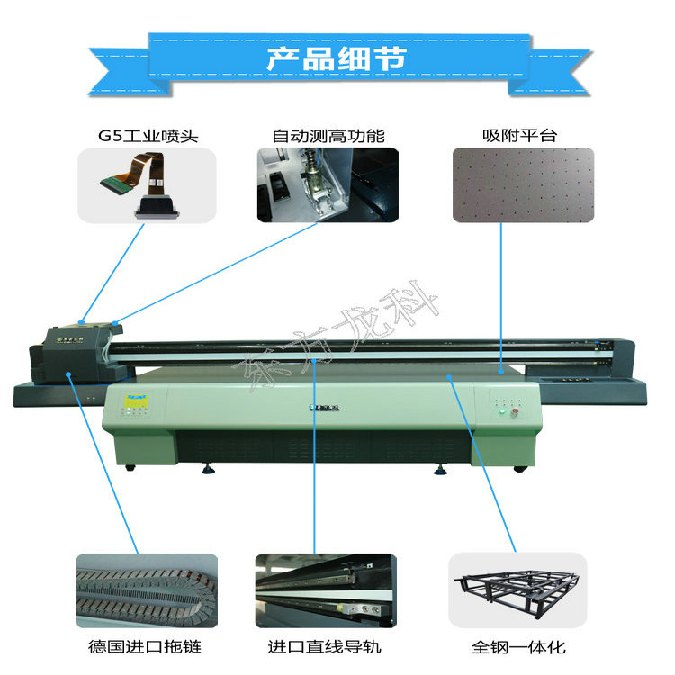 能夠在最大厚度為100mm的材料上打印,機器自動檢測介質(zhì)厚度,根據(jù)介質(zhì)厚度自動調(diào)整噴頭高度,提高生產(chǎn)的自動化程度,和圖像的輸出質(zhì)量。