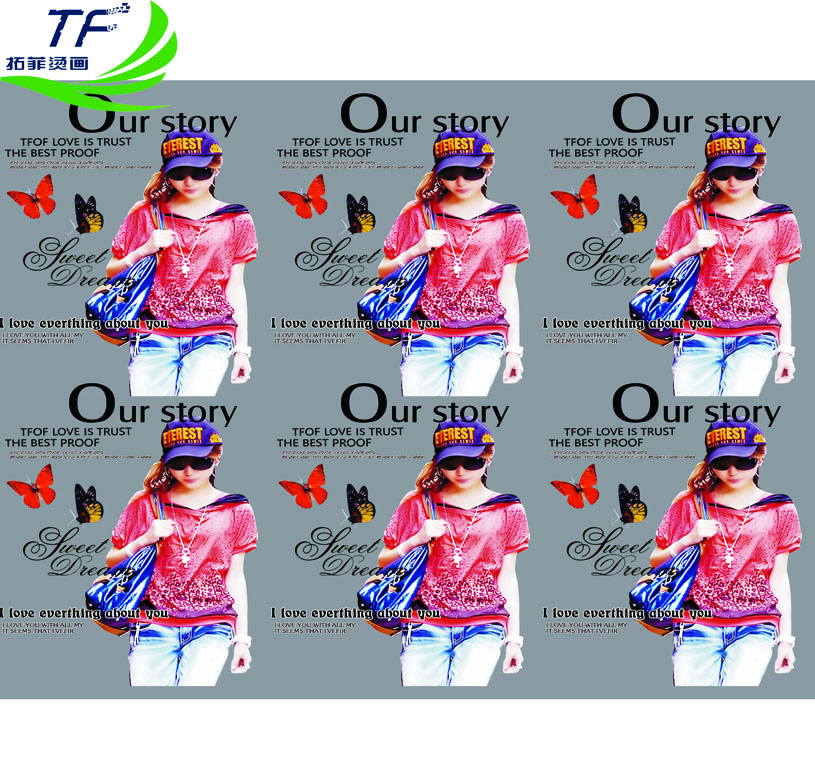 拓菲印刷有限公司,創(chuàng)建于2011年,位于中國國際商貿(mào)城---義烏,是一家手動燙畫機,氣動燙畫機,膠片燙畫,發(fā)泡燙畫,高彈耐水洗燙畫,金銀蔥燙畫,洗水嘜燙畫,滲透燙畫,柯式燙畫,植絨燙畫,美國燙畫,反光燙畫,夜光燙畫等熱轉(zhuǎn)印燙畫和燙畫機產(chǎn)品的專業(yè)生產(chǎn)廠家。擁有專業(yè)的電腦設(shè)計、業(yè)界最先進的全新四色彩印機等優(yōu)越的生產(chǎn)設(shè)備。 巨明霞:15857927379 微信: QQ:2851537797 公司地址:公司產(chǎn)品被廣泛應用于服裝,箱包,鞋帽,皮具,工藝品等多個行業(yè).暢銷國內(nèi)市場,出口多個國家和地區(qū)。歡迎各界朋友蒞臨指導、參觀和業(yè)務洽談。