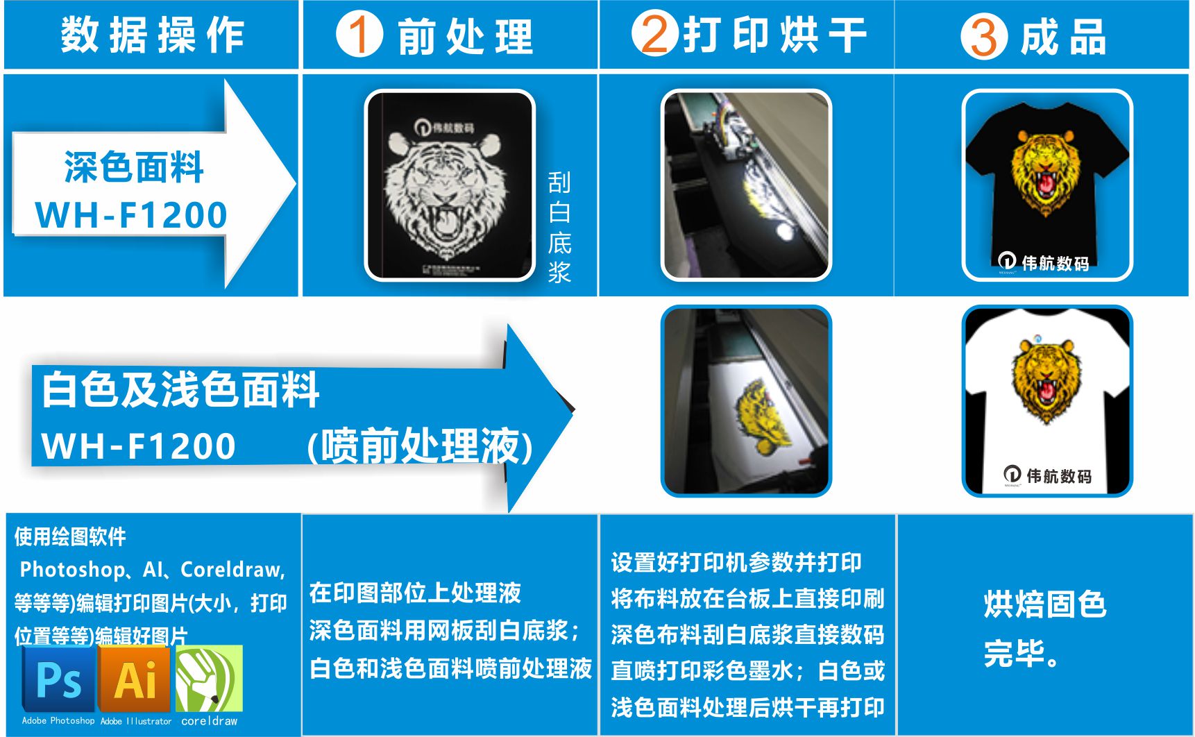 機(jī)器型號(hào):WH-F1200 機(jī)器類型:數(shù)碼印花機(jī) 功能:直噴數(shù)碼印花