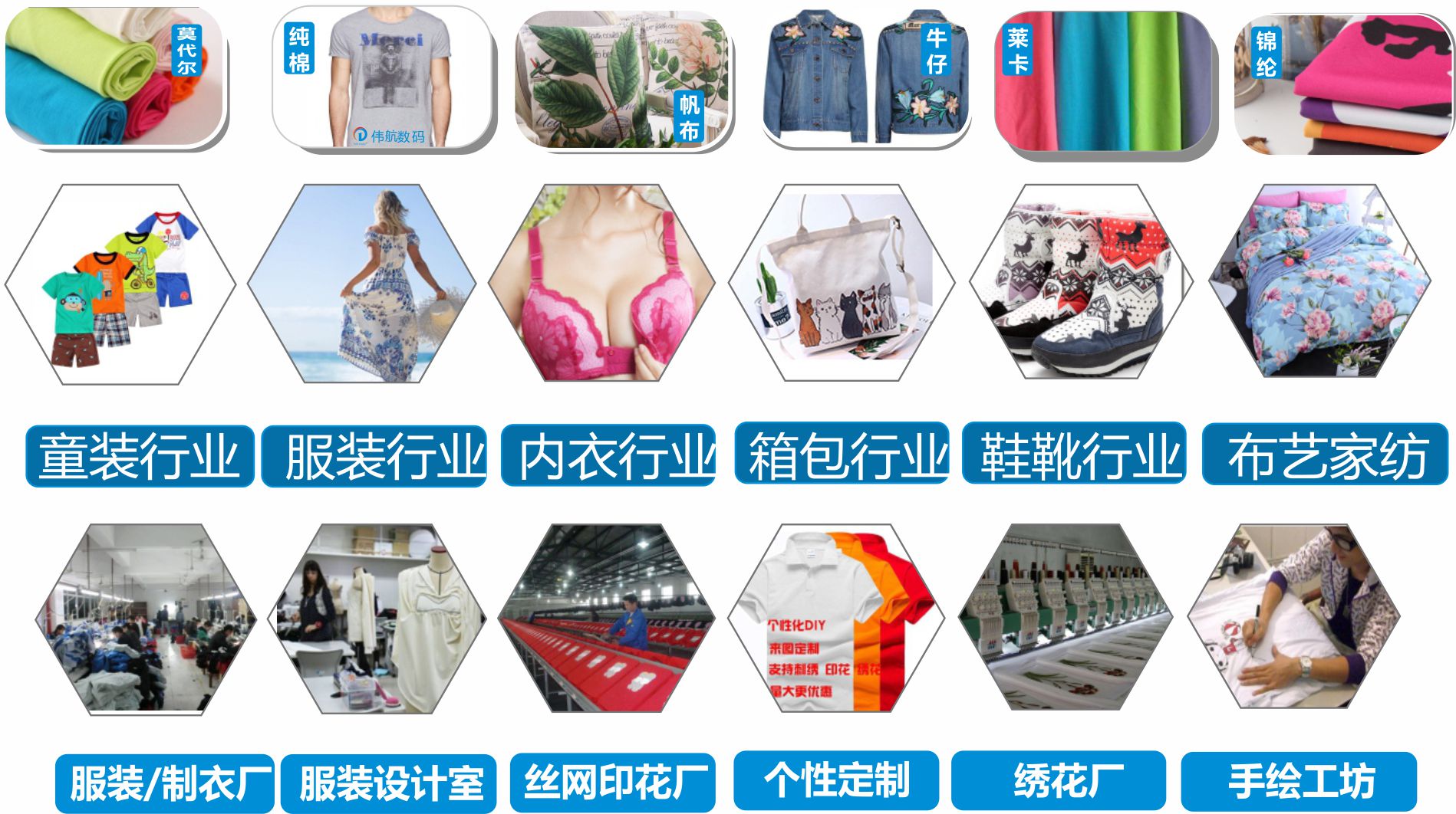 適用面料:純棉、針織、梭織、帆布、麻布、莫代爾、萊卡、絳綸、錦綸、牛仔、色丁、絲光棉、羊毛衫、皮革。