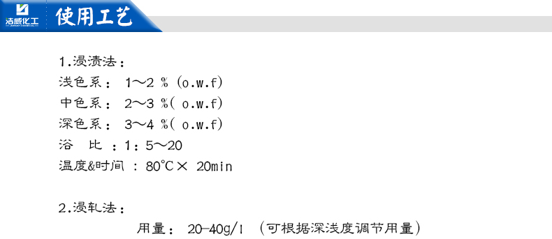 用量: 20-40g/l (可根據(jù)深淺度調(diào)節(jié)用量)