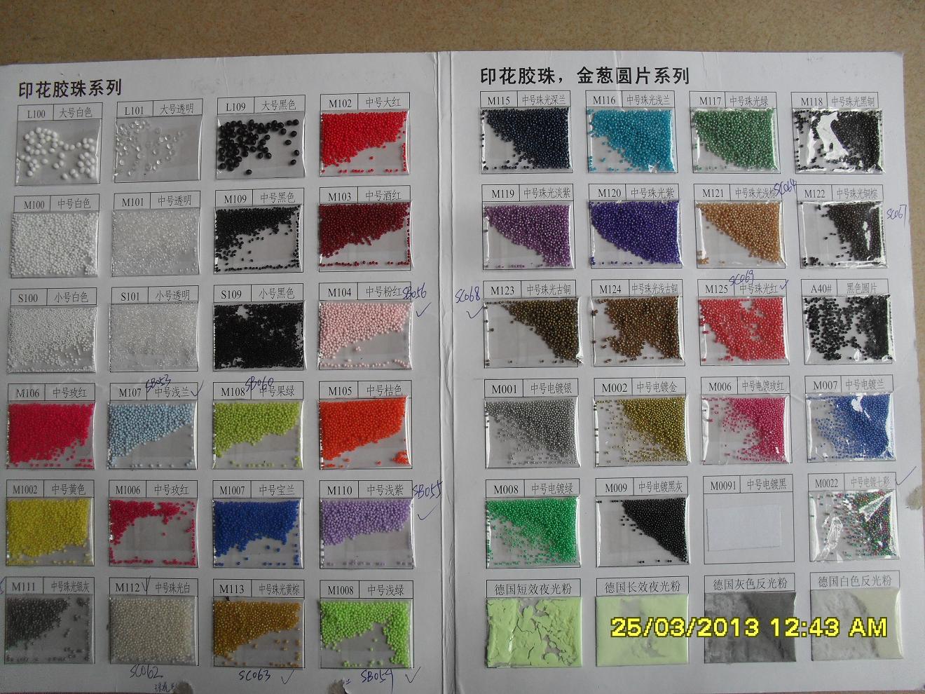 韓國膠珠(又名塑膠珠),采用韓國最新技術(shù)將顏色填充壓注而成,多應(yīng)用于布藝服裝印花、鞋材面料等。通過專用膠漿粘合到產(chǎn)品上,增強(qiáng)產(chǎn)品的立體效果和手感。產(chǎn)品有多種顏色可供選擇,彩色珠常用規(guī)格有小號(hào)0.6~0.8mm和 中碼1.0~1.2mm可耐高溫120~160℃。 產(chǎn)品優(yōu)點(diǎn) 1、成膜后表面粘性持久,壓敏性極佳、不易剝離、耐水性強(qiáng)。 2、不含鄰苯二甲酸鹽、甲醛、不含有害重金屬、不含溶劑。 使用方法:應(yīng)用前應(yīng)先將臺(tái)板清洗干凈,然后刮上上層臺(tái)膠,需等臺(tái)膠干后方可使用。顏色: 黑色 白色 透明 淺粉色 紫羅蘭 珍珠銀 綠色 藏褐色 紅色 葡萄色 淺綠色 橄欖綠 粉紅 金色銀色 橙色 黃色 金黃色等