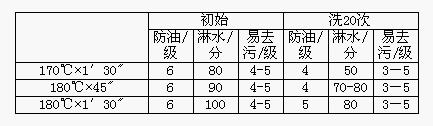 注:免燙測試:AATCC 124-2001;三防洗滌方法:普通家用自動(dòng)洗衣機(jī)40℃×15分鐘為1次,浴比 1:30,洗滌劑2g/L。