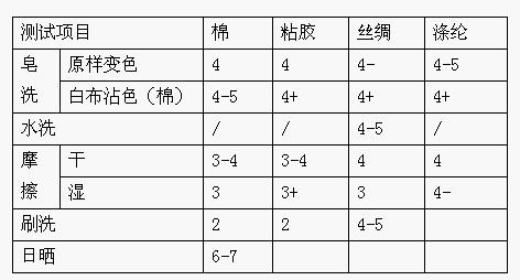 3.印花織物的各項(xiàng)色牢度不低于染料印花水準(zhǔn)。