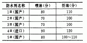 從上述對比結(jié)果中可以看到4#防水、拒油效果均較理想。1#、5#效果基本相同,但考慮到成本靠進口防水劑價格較國產(chǎn)防水劑價格高,故選用5#為該產(chǎn)品的防水、拒油整理劑。