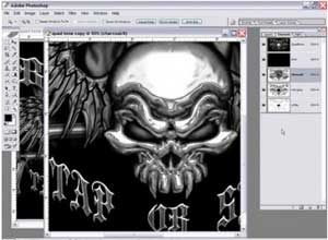 圖2:該輪到處理設(shè)計(jì)圖了。一旦你在使用曲線(Curves)菜單分離顏色方面獲得了一些經(jīng)驗(yàn),就可以試著對(duì)灰度設(shè)計(jì)圖進(jìn)行分色處理。隨著你逐漸領(lǐng)會(huì)了使用四色調(diào)的細(xì)微要點(diǎn),即使是最復(fù)雜的圖像,這種顏色模式也會(huì)使它變得更容易處理。