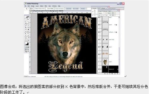 其后,將選出的狼圖案的部分放到K色背景中作為定型排版,隨后再開始分色工作(圖3)。