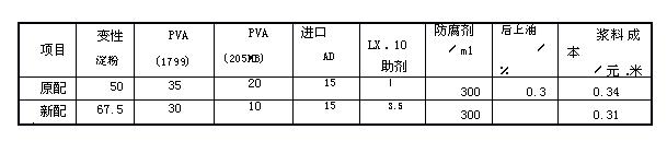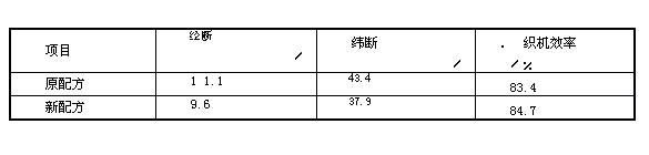 我們?cè)谛屡浞街惺褂肔X一10無(wú)機(jī)納米漿料助劑,與未使用納米漿料助劑的原配3.Ⅸ(77上漿實(shí)踐,并且對(duì)在津田駒ZA205i型噴氣織機(jī)上的織造效果進(jìn)行了跟蹤分析,具體的漿料配方、漿紗工藝參數(shù)、織造效果分別見(jiàn)表1、表2和表3。