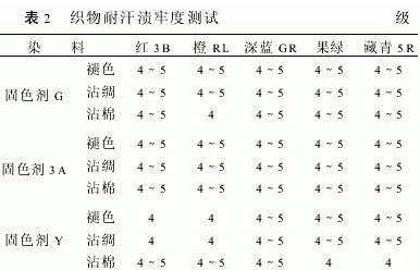 (2)經(jīng)固色劑G處理的染色織物,色光幾乎沒(méi)有變化,色澤純正。